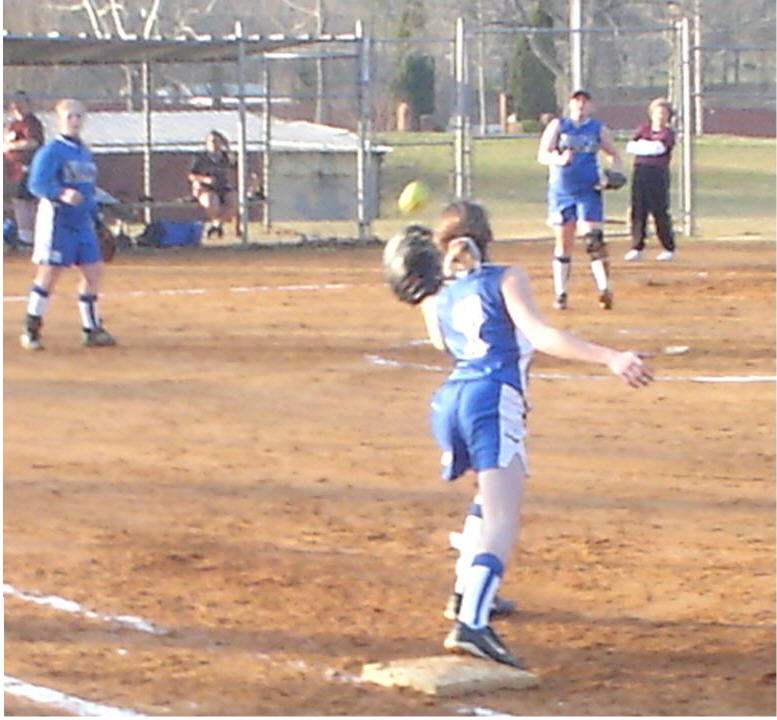 hannah about to catch the ball to get the grl out at 1st!